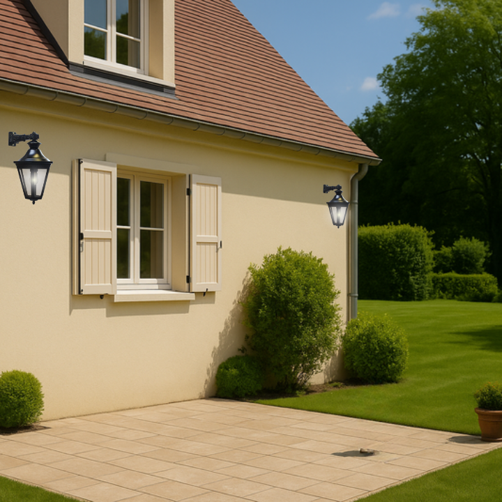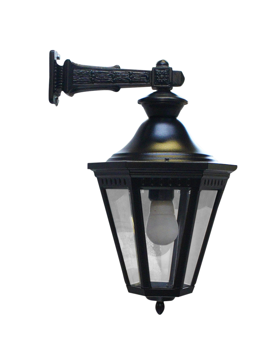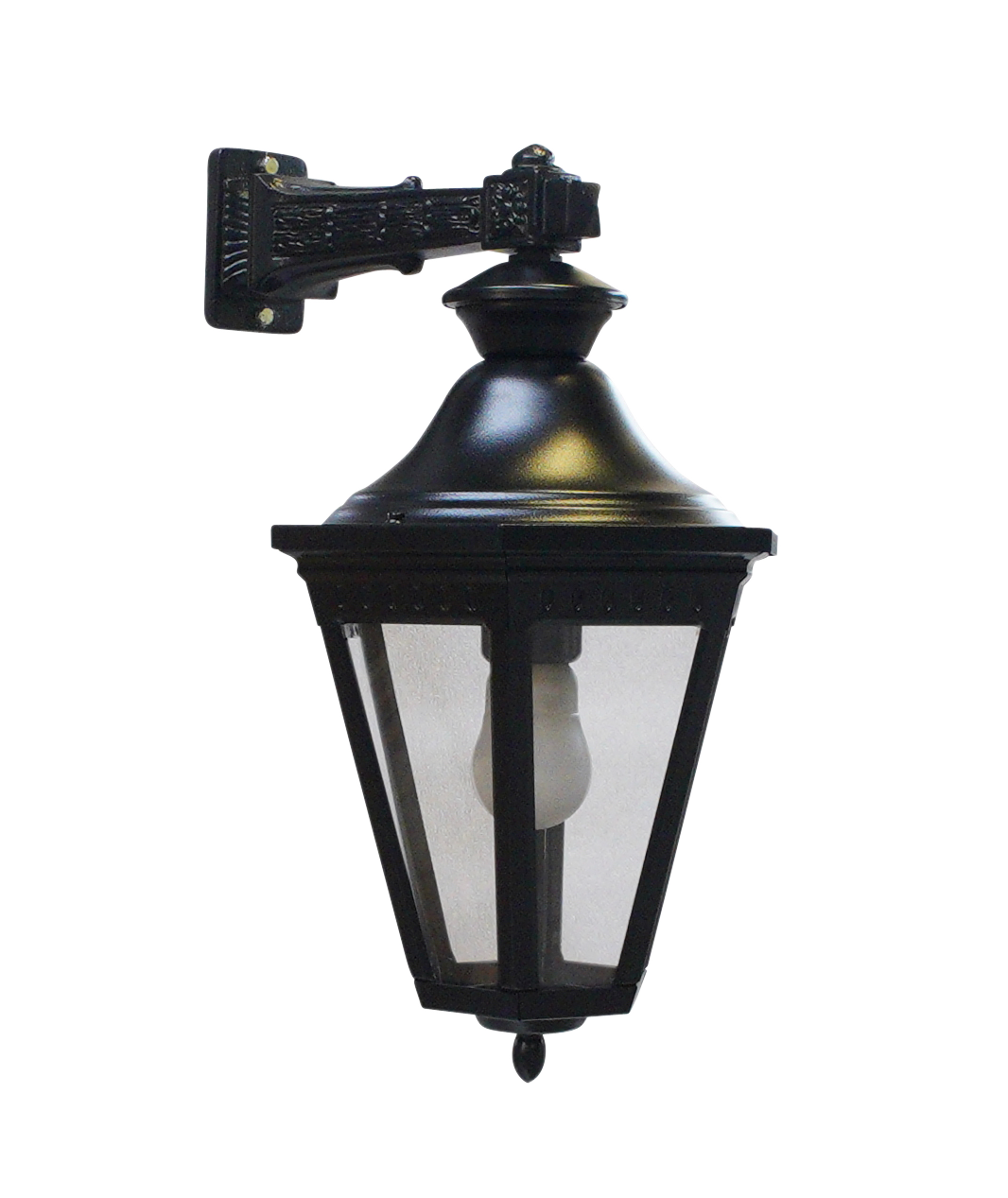 Les composants de cette console en fonte sont d'abord grenaillés puis sablés ; ils sont ensuite métallisés puis peints en noir RAL 9005 par thermolaquage assurant un traitement anti-corrosion de qualité. La lanterne en aluminium dont elle est équipée, est assemblée en tôlerie soudée par points avec un dôme en métal repoussé noir RAL 9005 et un diffuseur en polycarbonate injecté clair sur 6 faces et 2.40 m de câble électrique. Elle est pourvue d'un culot à vis E27 (pouvant recevoir une ampoule LED) et a un indice de protection 44/classe 1, assurant une excellente durée de vie, même en cas d'utilisation intensive et en zone côtière. Les chevilles, vis de fixation et le gabarit de perçage fournis vous permettront une installation simplifiée. Sa longueur totale est de 0,34 m. Dimensions de la lanterne : Hauteur 403 mm Largeur 275 mm
