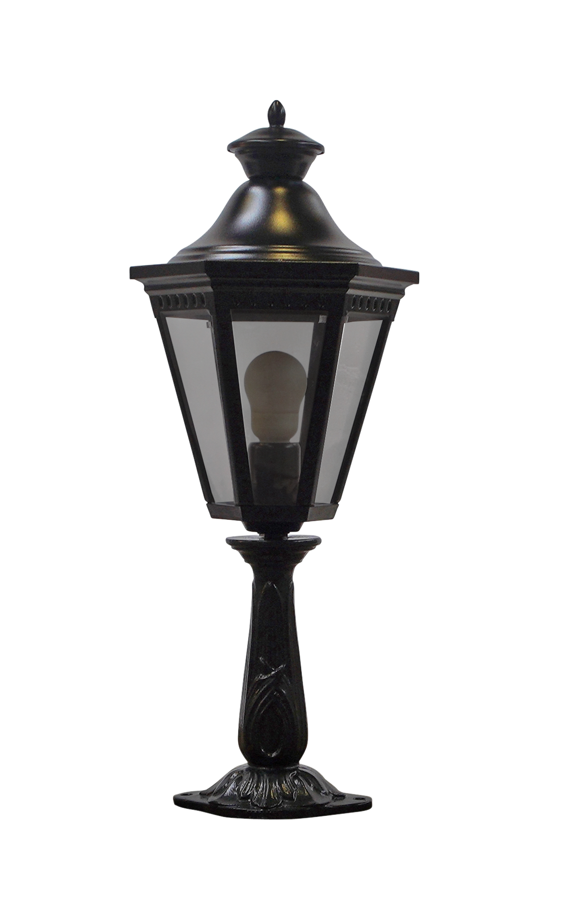 Les composants de ce candélabre en fonte sont d'abord grenaillés puis sablés ; ils sont ensuite métallisés puis peints en noir RAL 9005 par thermolaquage assurant un traitement anti-corrosion de qualité. La lanterne en aluminium dont il est équipé, est assemblée en tôlerie soudée par points avec un dôme en métal repoussé noir RAL 9005 et un diffuseur en polycarbonate injecté clair sur 6 faces et 2.40 m de câble électrique. Elle est pourvue d'un culot à vis E27 (pouvant recevoir une ampoule LED) et a un indice de protection 44/classe 1, assurant une excellente durée de vie, même en cas d'utilisation intensive et en zone côtière. Les pattes de scellements et le gabarit de perçage fournis vous permettront une installation simplifiée. Sa hauteur totale est de 0,67 m. Dimensions de la lanterne : Hauteur 403 mm Largeur 275 mm
