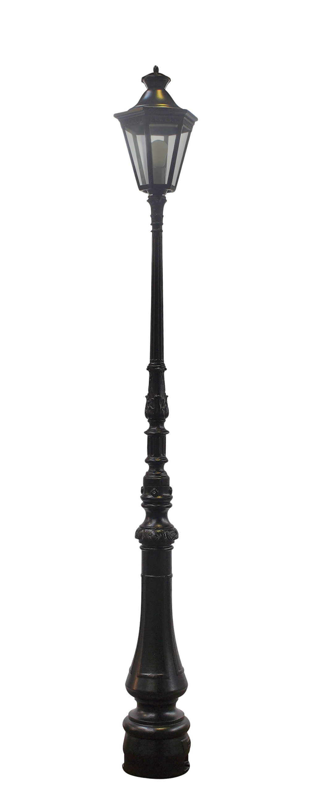 Les composants de ce candélabre en fonte sont d'abord grenaillés puis sablés ; ils sont ensuite métallisés puis peints en noir RAL 9005 par thermolaquage assurant un traitement anti-corrosion de qualité. La lanterne en aluminium dont il est équipé, est assemblée en tôlerie soudée par points avec un dôme en métal repoussé noir RAL 9005 et un diffuseur en polycarbonate injecté clair sur 6 faces et 2.40 m de câble électrique. Elle est pourvue d'un culot à vis E27 (pouvant recevoir une ampoule LED) et a un indice de protection 44/classe 1, assurant une excellente durée de vie, même en cas d'utilisation intensive et en zone côtière. Les pattes de scellements et le gabarit de perçage fournis vous permettront une installation simplifiée. Sa hauteur totale est de 2,21 m. Dimensions de la lanterne : Hauteur 403 mm Largeur 275 mm