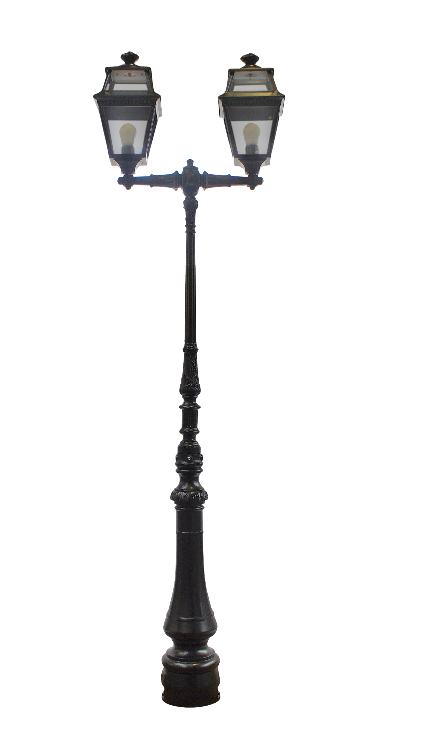 Les composants de ce candélabre en fonte sont d'abord grenaillés puis sablés ; ils sont ensuite métallisés puis peints en noir RAL 9005 par thermolaquage assurant un traitement anti-corrosion de qualité. Les lanternes en aluminium dont il est équipé, sont assemblées en tôlerie soudée par points noir RAL 9005 avec chapiteau et diffuseur en verre clair éclairant sur 4 faces et 2.40 m de câble électrique. Elles sont pourvues d'un culot à vis E27 (pouvant recevoir une ampoule LED) et ont un indice de protection 44/classe 1, assurant une excellente durée de vie, même en cas d'utilisation intensive et en zone côtière. Les pattes de scellements et le gabarit de perçage fournis vous permettront une installation simplifiée. Sa hauteur totale est de 2,37 m. Dimensions de la lanterne : Hauteur 459 mm Largeur 237 mm