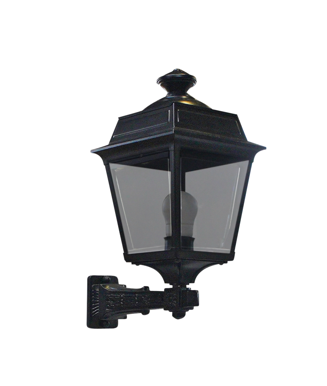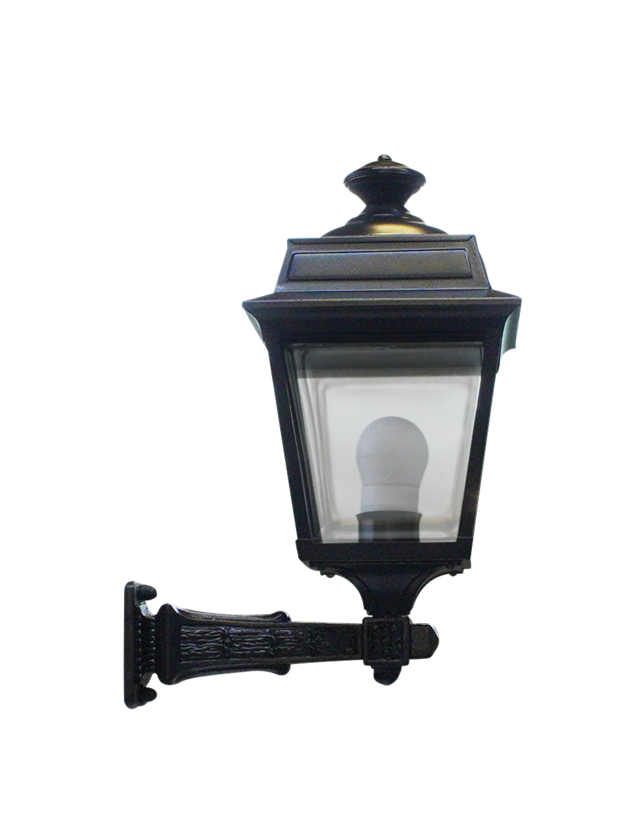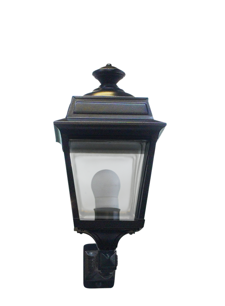 Les composants de cette console en fonte sont d'abord grenaillés puis sablés ; ils sont ensuite métallisés puis peints en noir RAL 9005 par thermolaquage assurant un traitement anti-corrosion de qualité. La lanterne en aluminium dont elle est équipée, est assemblée en tôlerie soudée par points noir RAL 9005 avec un diffuseur en verre clair éclairant sur 4 faces et 2.40 m de câble électrique. Elle est pourvue d'un culot à vis E27 (pouvant recevoir une ampoule LED) et a un indice de protection 44/classe 1, assurant une excellente durée de vie, même en cas d'utilisation intensive et en zone côtière. Les chevilles, vis de fixation et le gabarit de perçage fournis vous permettront une installation simplifiée. Sa longueur totale est de 0,31 m. Dimensions de la lanterne : Hauteur 375 mm, Largeur 215 mm