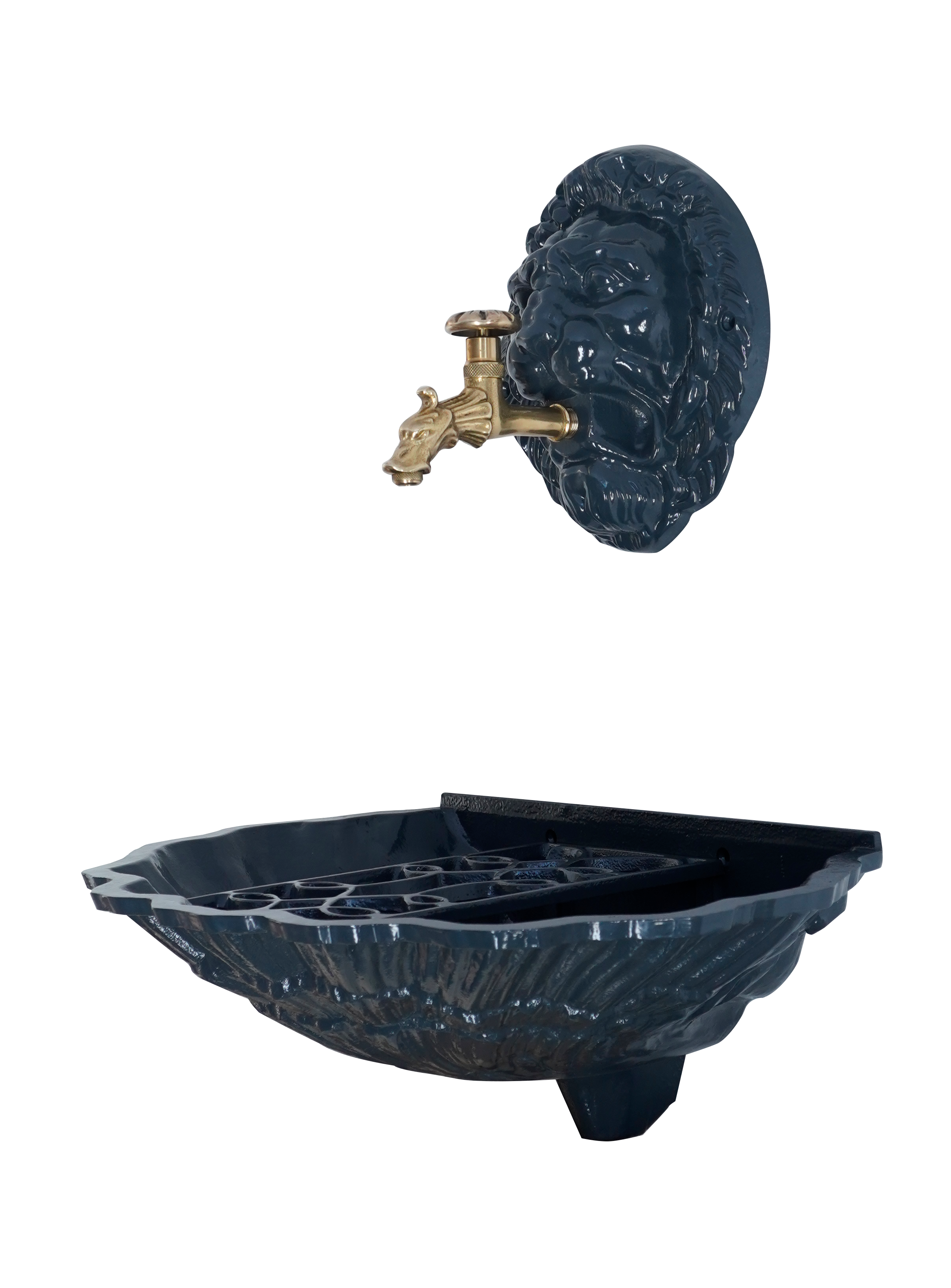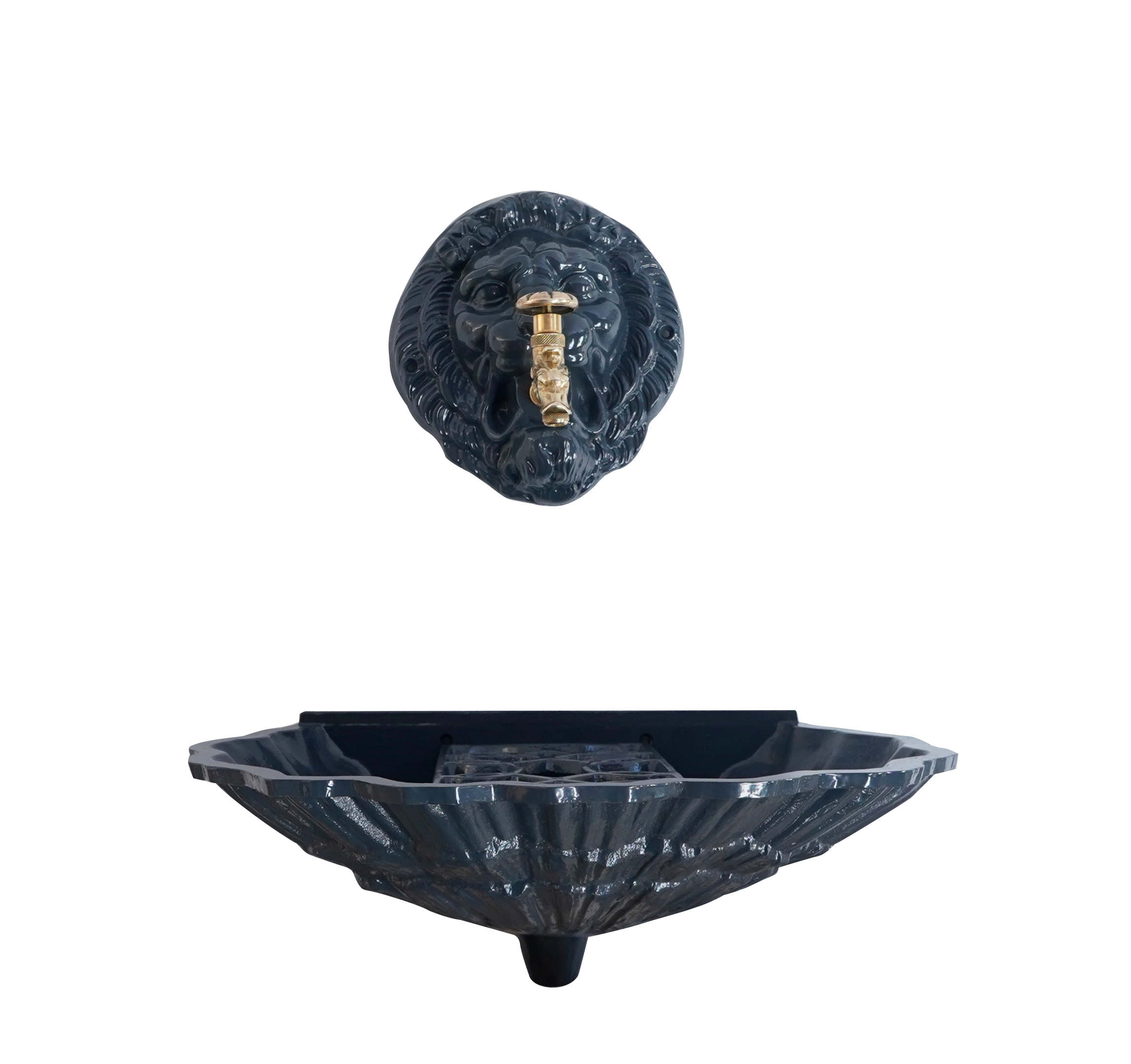 Fontaine coquille au Lion - gris 7016 + robinet colvert