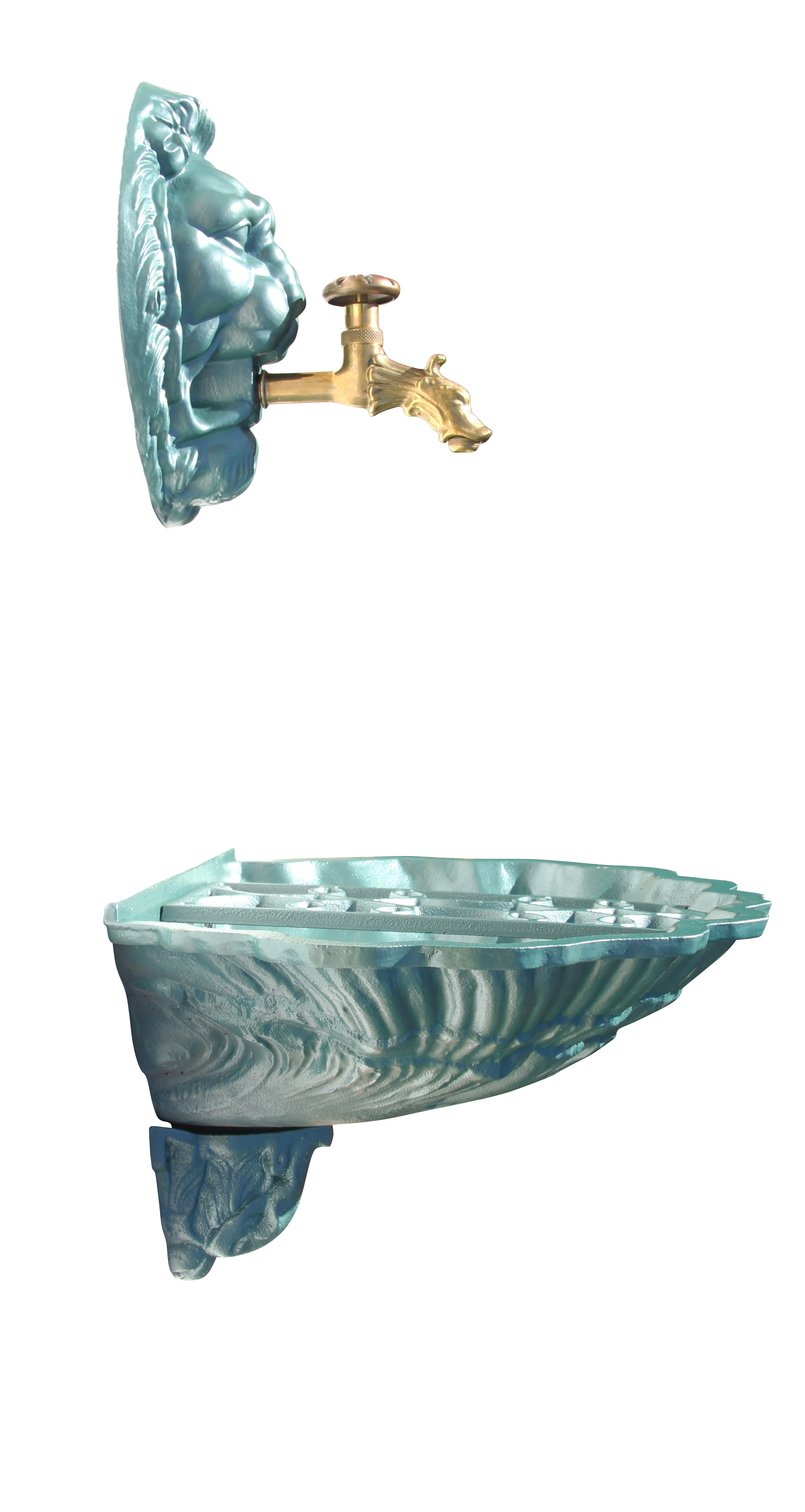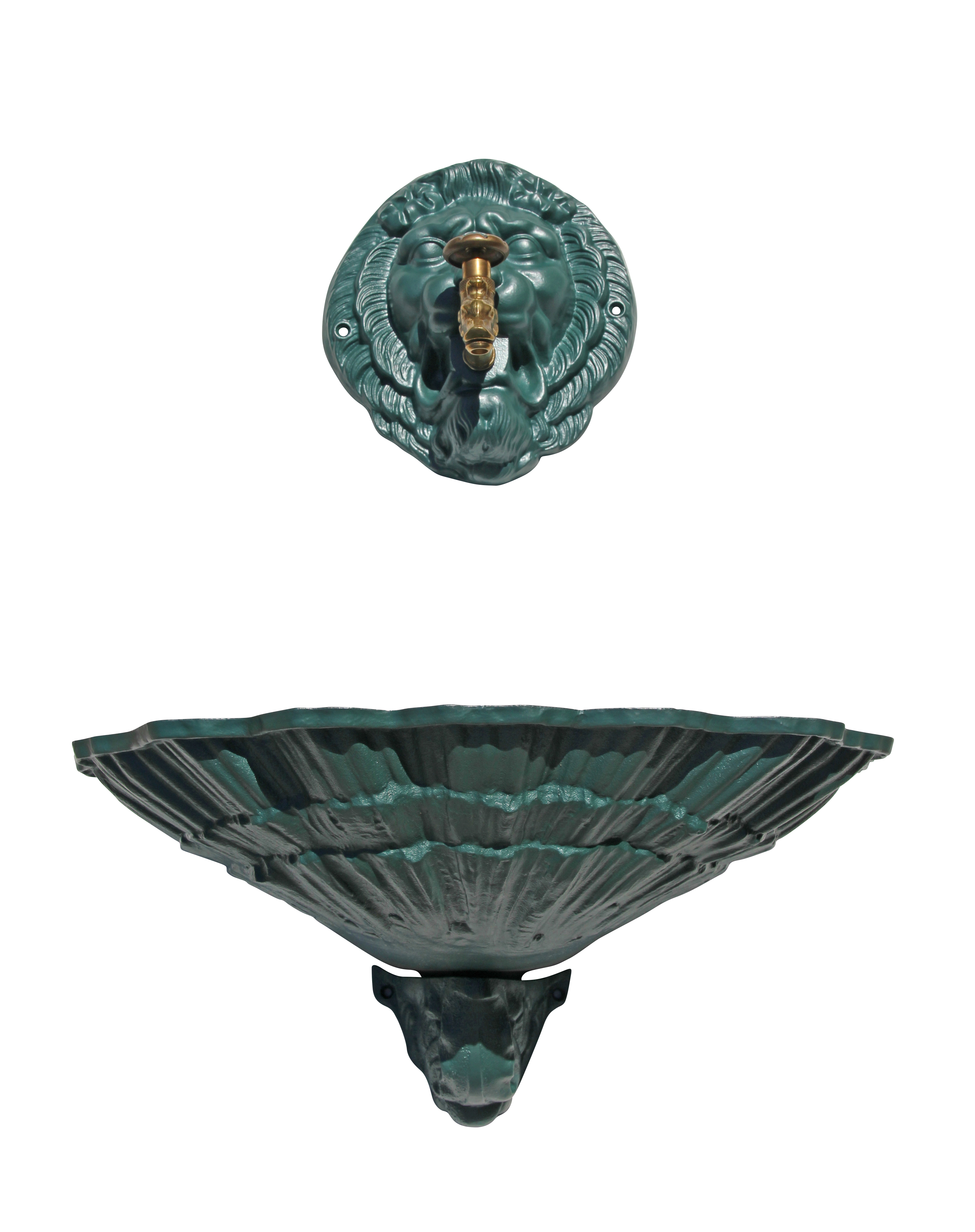 Fontaine coquille au Lion - vert antique + robinet colvert