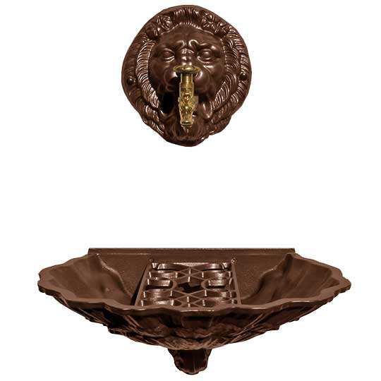 Fontaine coquille au Lion - brun antique + robinet colvert