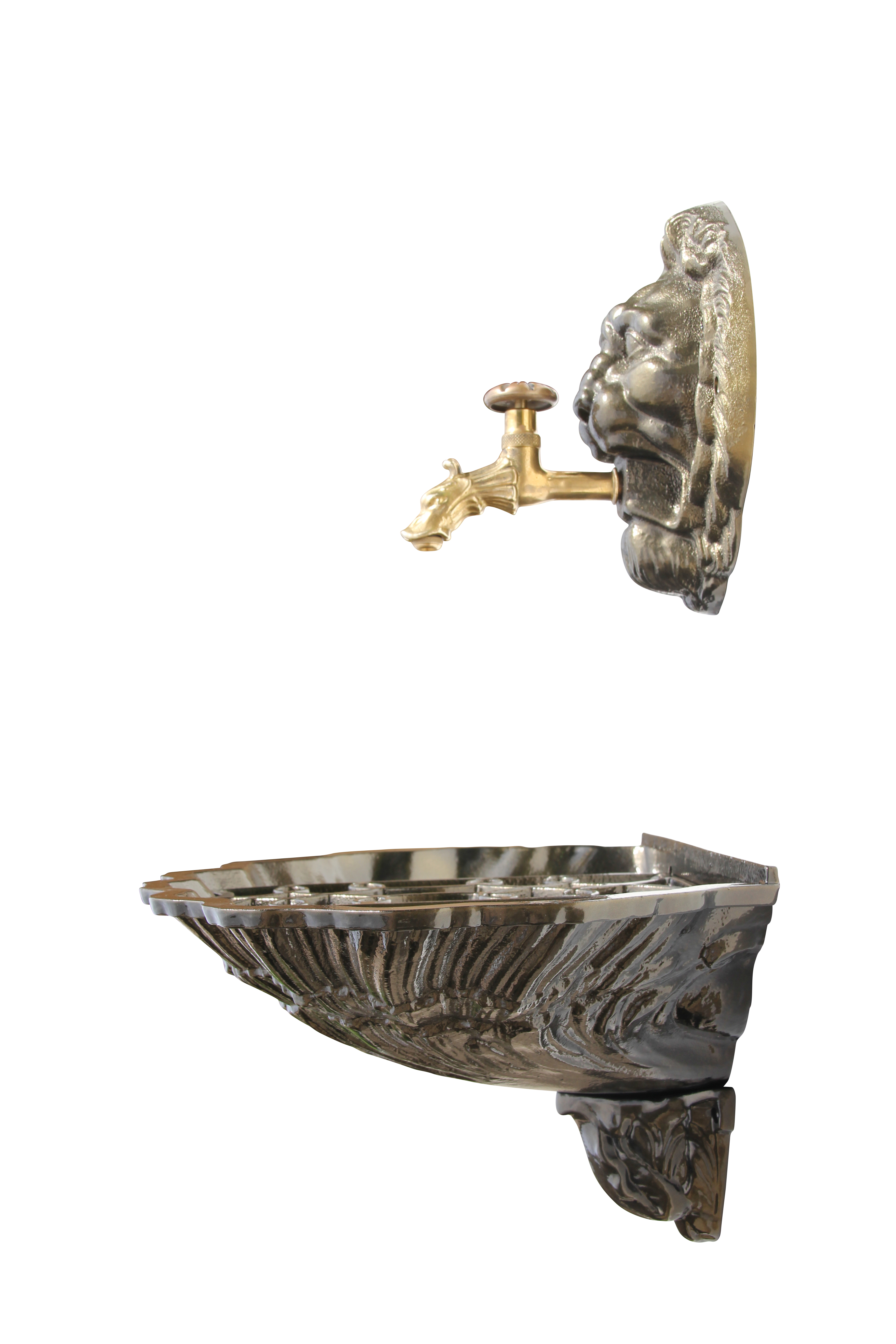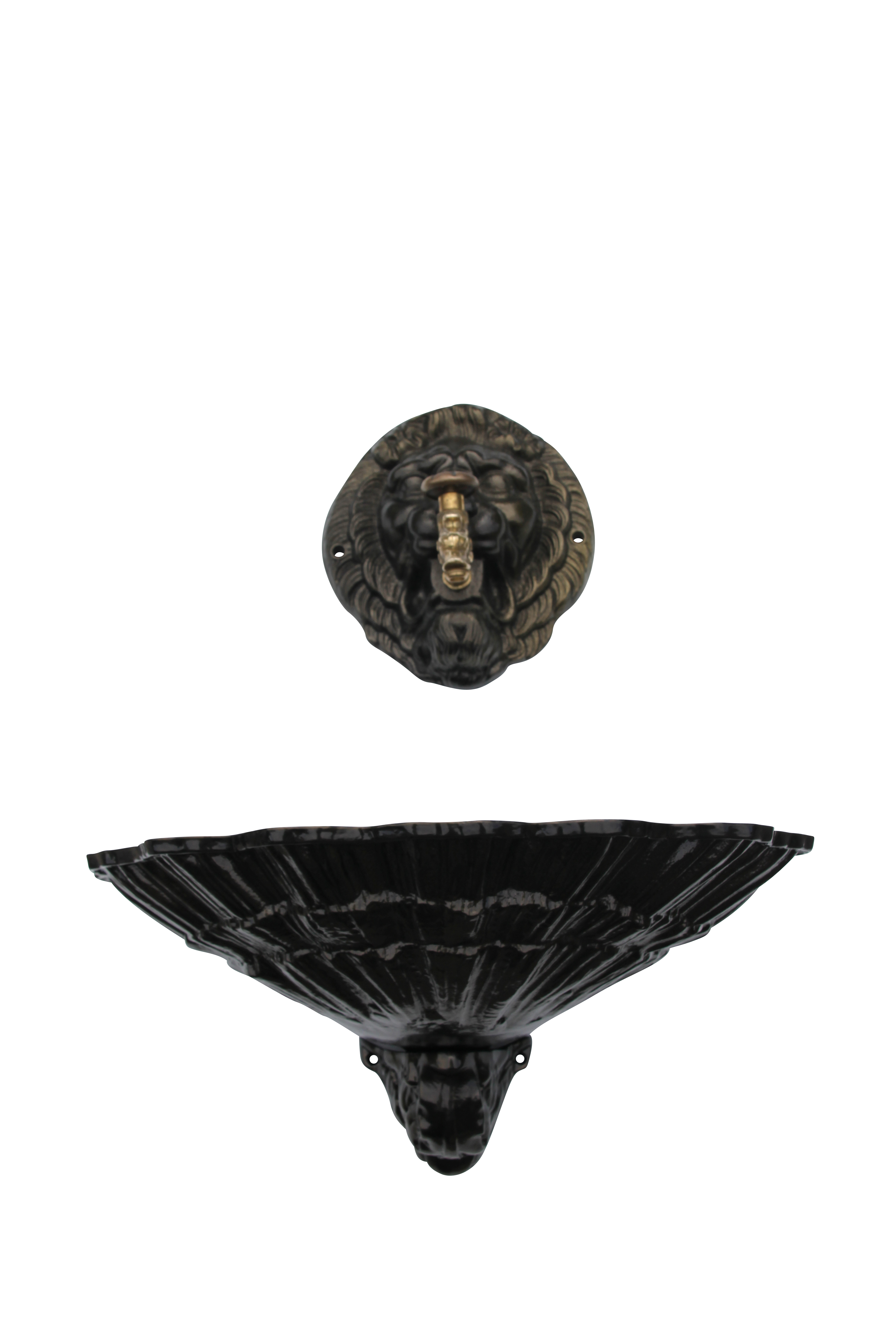 Fontaine coquille au Lion - vieux bronze + robinet colvert