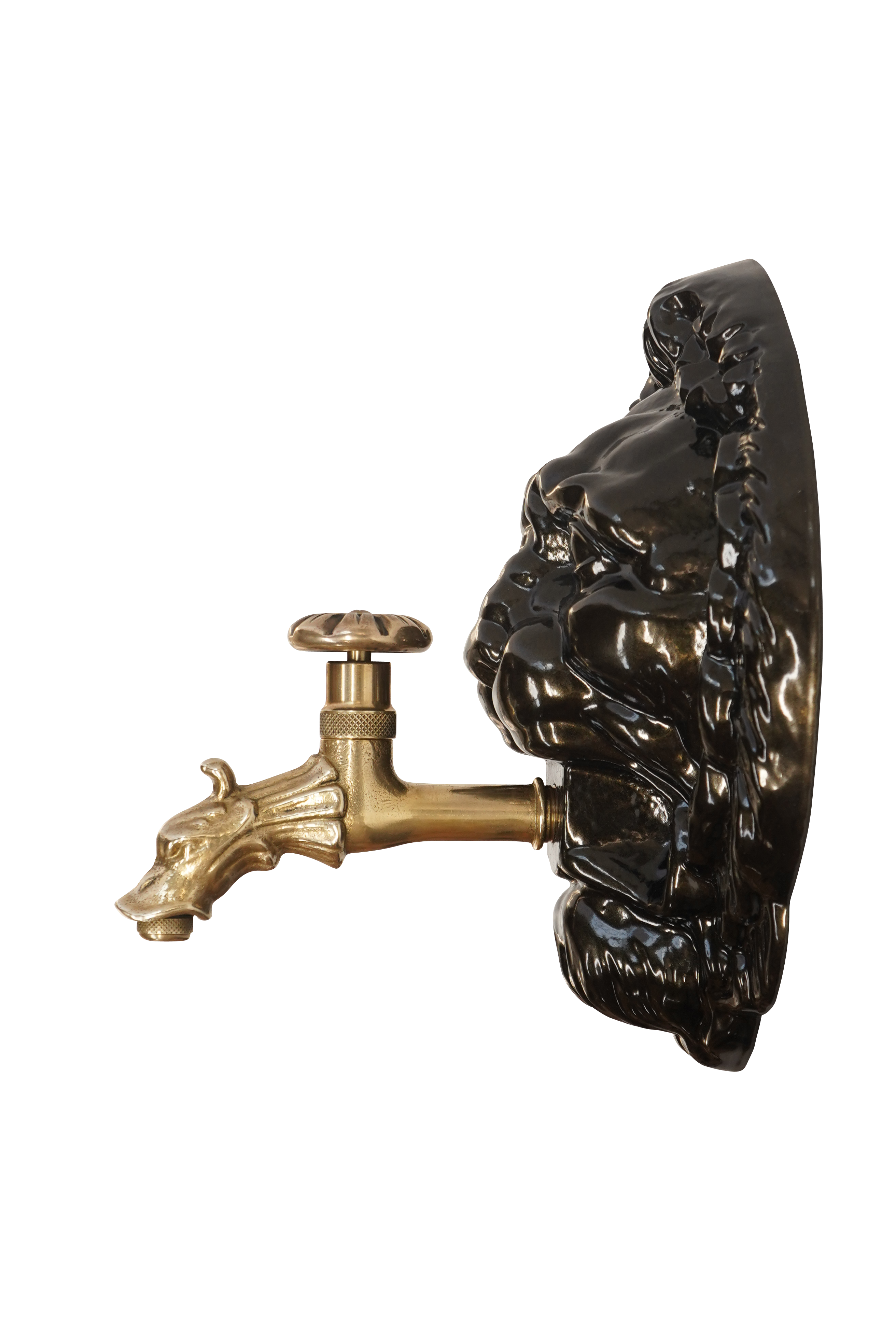 Mascaron Tête de Lion vieux bronze + robinet colvert